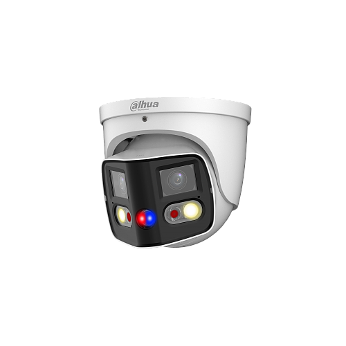 Dahua, WizSense 2× 4MP Tioc Dual-Lens Splicing Bullet Netzwerkkamera 180°, Smart Dual Illumination IR-Licht (25 m) und weißes Licht bis zu 20 m, Kamera mit aktiver Abschreckung, SMD 4.0, AI SSA, Quick Pick, Smart Search, dreifach Streaming H.264 / H.265, 20 fps bei 4096 × 1860, WDR (120 dB), D/N, 2,8-mm-Objektiv, IR- und Weißbeleuchtung umschaltbar durch Objekt, roter und blauer Blitzalarm, Lautsprecher-/Sirenenalarm IP67 , 12 VDC/PoE